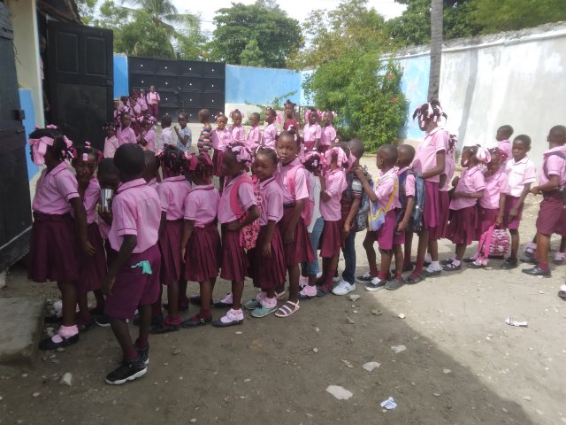 Pour le moment, nous envoyons plus d’argent à l’école Fraternité pour compenser, afin qu’ils puissent se ravitailler localement, mais nous ne pourrons pas tenir longtemps. Le directeur a dû arrêter les inscriptions à 250 enfants. Ils sont beaucoup plus à vouloir s’inscrire, car ils savent bien que non seulement cette école est ouverte, et presque la seule à Cité Soleil, mais aussi qu’il y a une cantine. Les enfants, en Haïti, aiment l’école. Ils veulent sortir de la misère et savent que c’est le meilleur chemin pour y parvenir, mais aussi, avec les jardins,le terrain de sport, l’école offre une relative sécurité par rapport au bidonville où ils habitent, insalubre et dangereux. Quand ils sont chez eux, ils ne peuvent pas sortir.